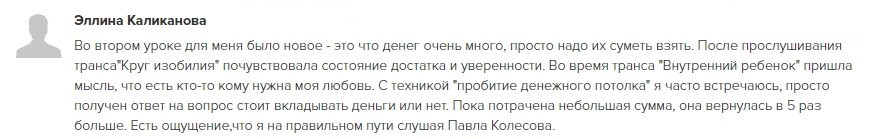 "Денег стало больше, смогла расплатиться по многим обязательствами. Спасибо Павлу. ..."